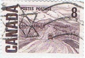 The 8 cent stamp features the “Alaska Highway between Watson Lake and Nelson” painted by A.Y. Jackson in 1943. Born in Montreal in 1882, he was a member of the Group of Seven. A.Y. Jackson passed away in 1974 at Kleinburg, Ontario.